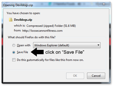 1) As soon as you enter your URL (loosecannonfitness.com/your email address) into your web browers's window, your resource will start to download.